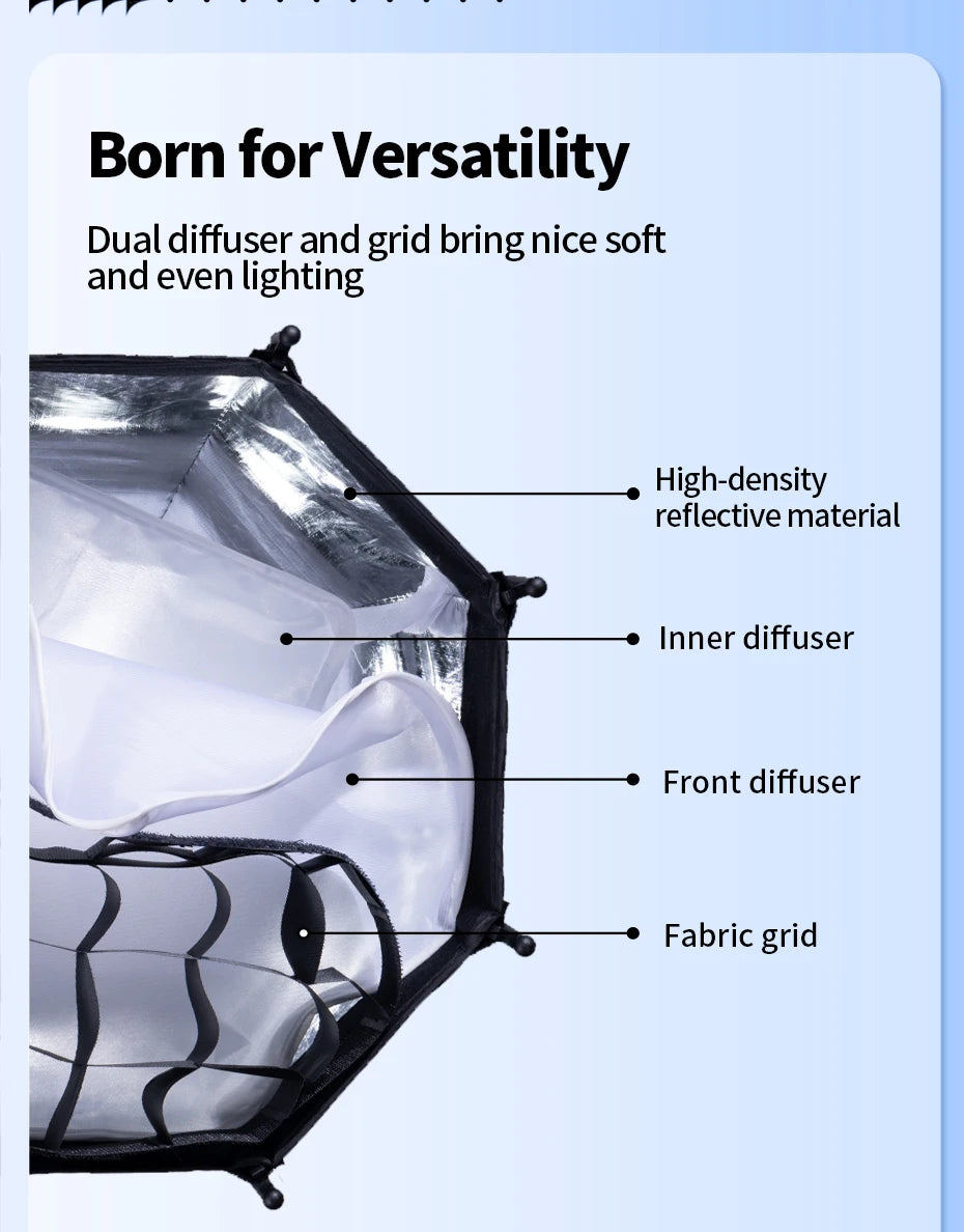 Ulanzi AS-D30 30cm Octagonal Softbox Quick Pack Light Box with Mini Bowens Mount for 40W COB Video Light