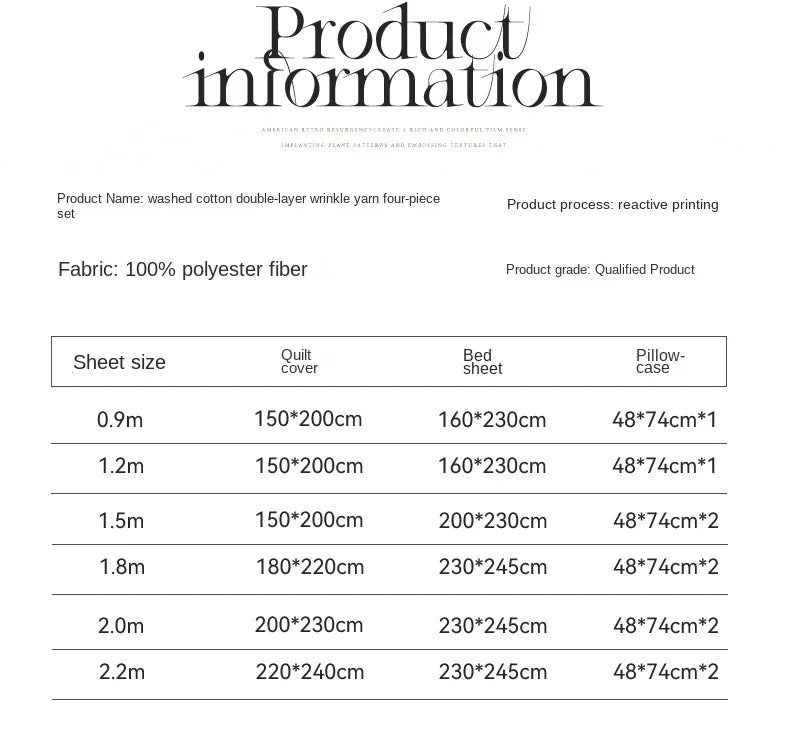 Washed Cotton Double Yarn Crepe Striped Quilt Set 3-4 Pillowcase with Sheet Bedding Cover Supplies 200x230 220x240 Skin Friendly