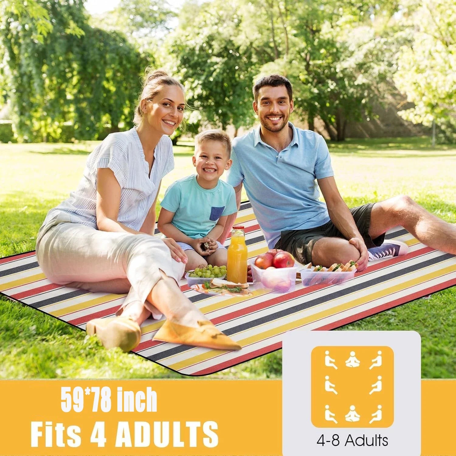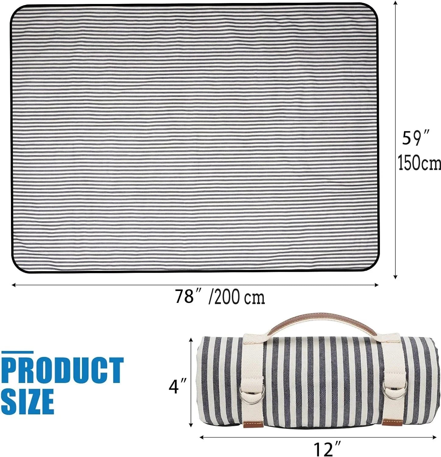 Waterproof Picnic Blanket with Carry Strap for Beach Mat or Family Outdoor Camping Party Large Picnic Outdoor Blanket