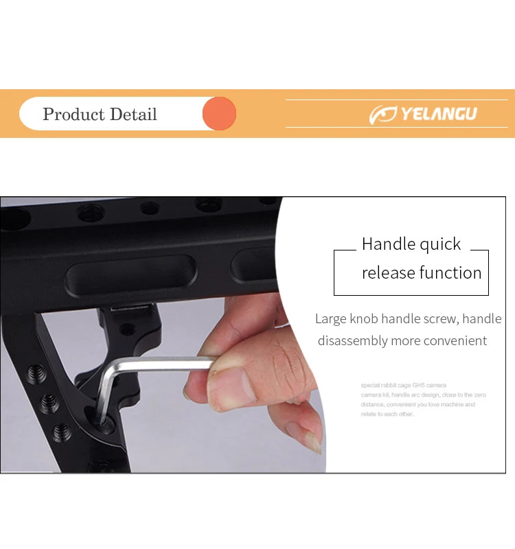 YELANGU Camera Cage Rig Kit for Sony A7S A7 A7R A72 A7RII A7SII A6000 A6500 A6300 with Dual Cold Shoe Mounts 1/4 Inch Threads