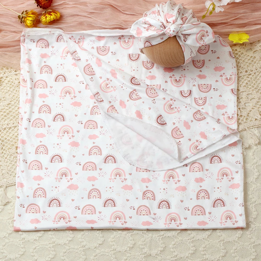 Ylsteed Newborn Receiving Photography Swaddle Blanket with Bow Turban Hat Infant Photography Props New born Photoshooting Wraps