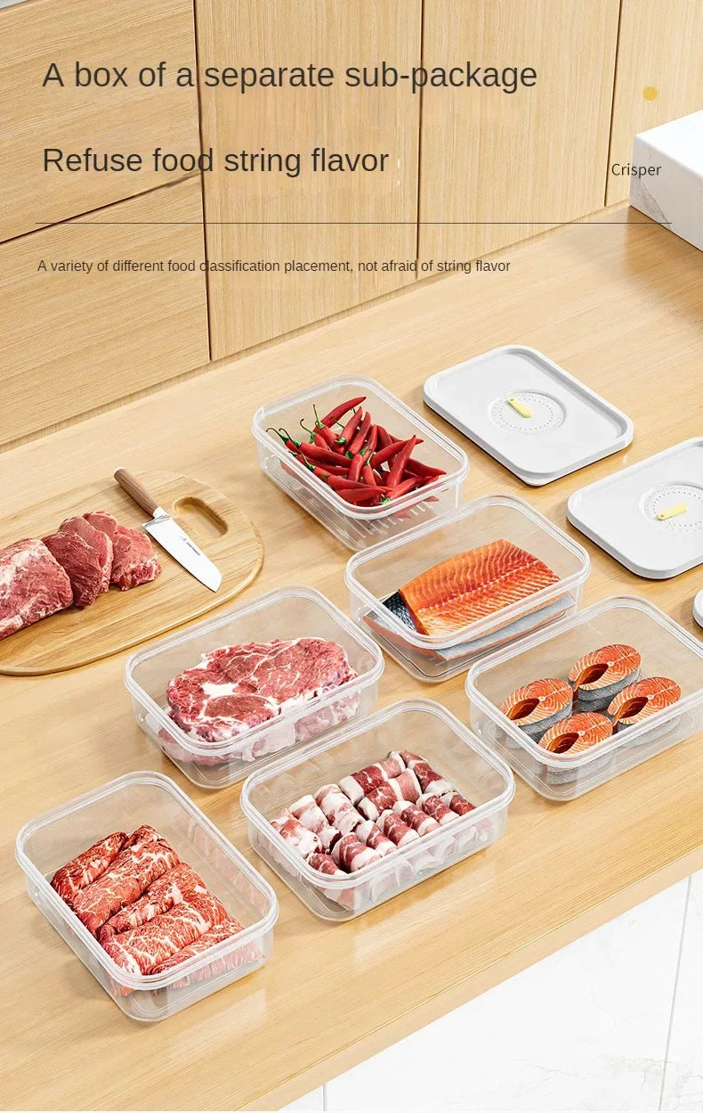 6PCS Thickened Storage Boxes Refrigerator Frozen Meat Dispenser Food Grade Crisper Food Seal Timing Box Kitchen Storage Supplies