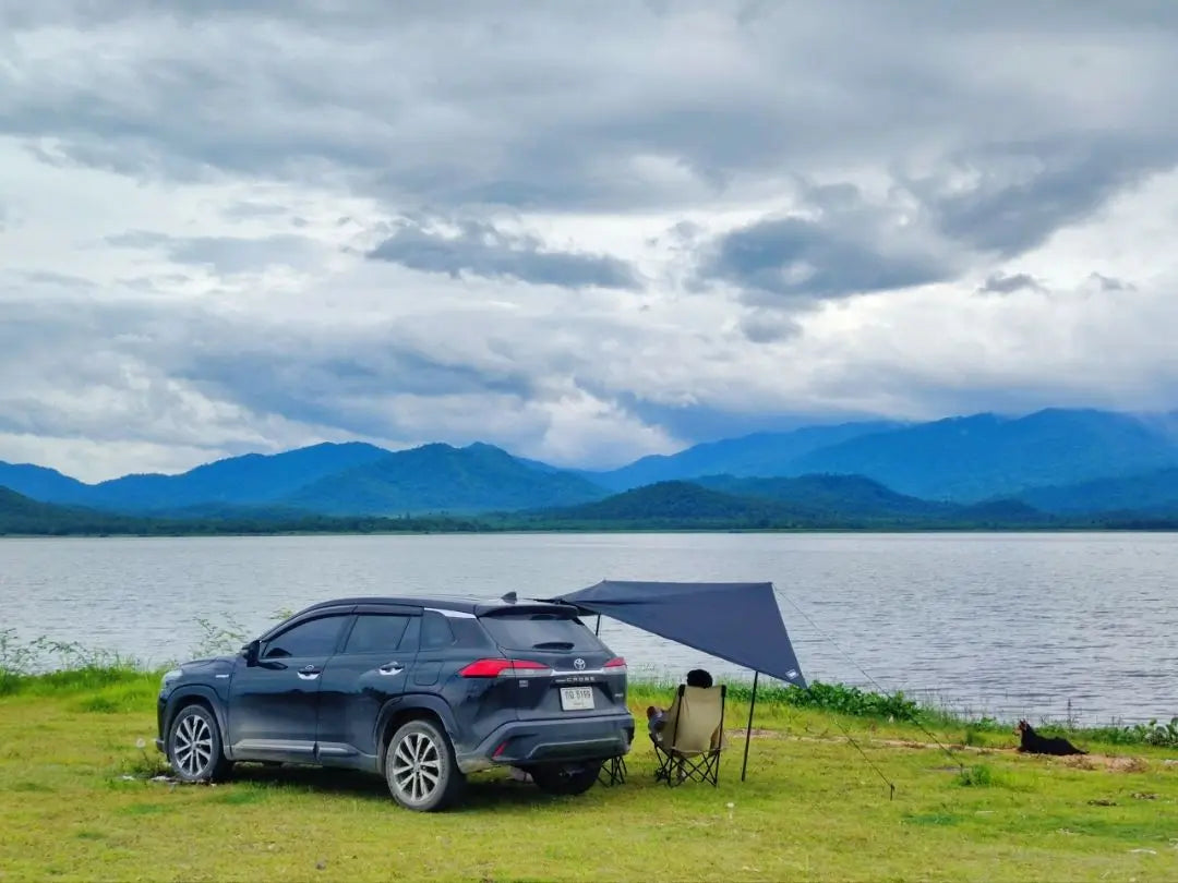 Bat Shape Car side Awning Black Coating Tarp 2x3 Outdoor Waterproof Camping Black Coated Car Rear Shelter Tent for SUV Van