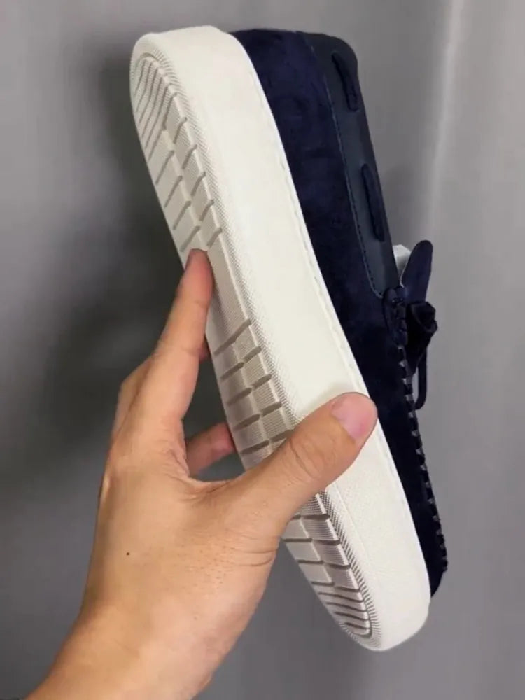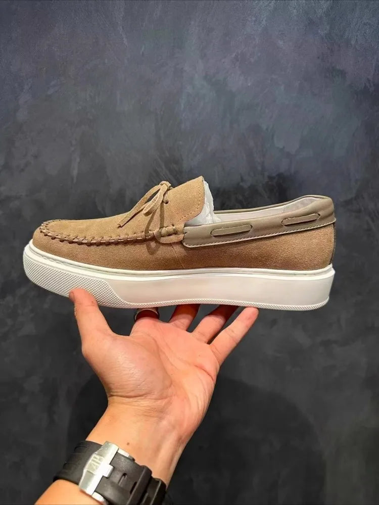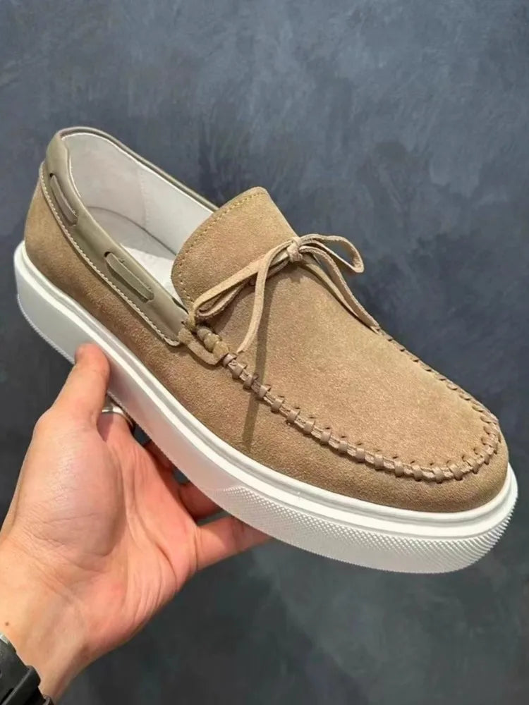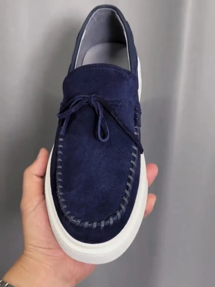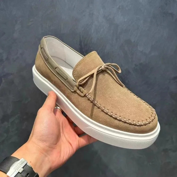 Fashion Mens Lace Up Slip On Loafers Thick Platform Real Suede Leather Business Casual Shoes Round Toe Comfortable Driving Shoes